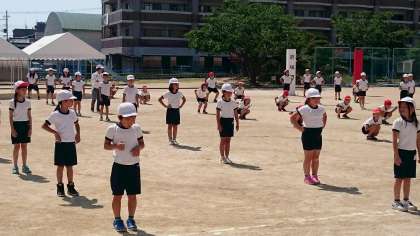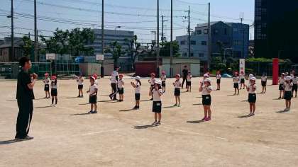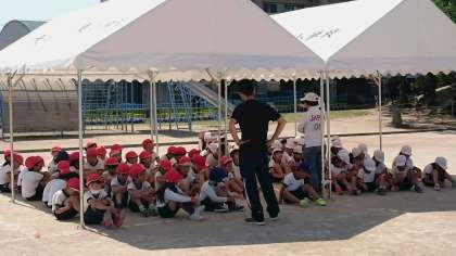 30に迫る気温の中、水分補給や休憩をとりながら練習をしています。