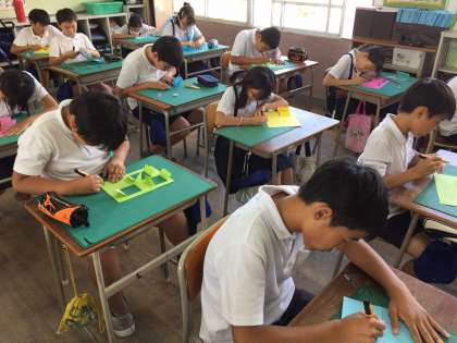 今日は切り絵で使うカッターナイフの使い方を確認しました。みんなルールとマナーを守って上手に使うことができました。