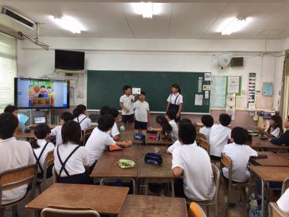 今日はoxford reading treeを用いて学習をしました。まず、物語に出てくる"Is it?" "It is...."のフレーズをみんなで確認しました。その後、グループでそのフレーズを使って会話をし、最後に発表をしました。