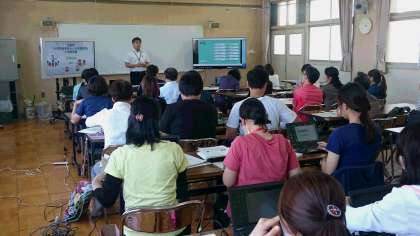 東小路小学校の先生方にも来ていただき、合同で研修会を受けました。