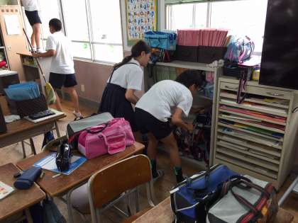 家庭科で「クリーン大作戦」の学習をしています。今日は今まで学んきた掃除の仕方やポイントをいかして、クリーン大作戦の実習をしました。新聞紙や雑巾などを効果的に用いて隅々までピカピカにしました。