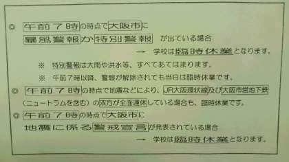 台風等、非常災害時の措置について4月に文書を配付しております。