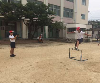 体育でハードル走をしました。