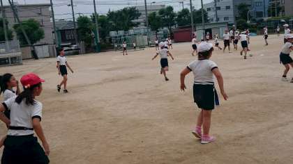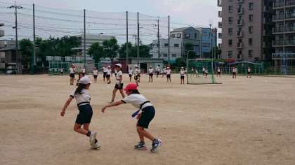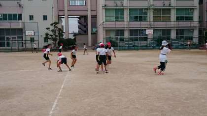 陸上クラブ・・・タグを腰につけてゲームをしていました。