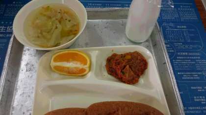 かぼちゃのミートグラタン スープ オレンジ(小) ライ麦パン 牛乳