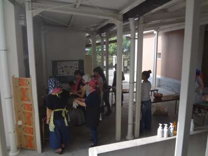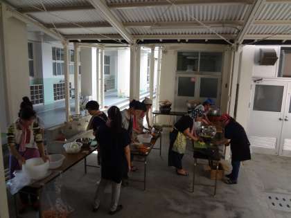 子どもたちがガチメンを楽しんでいる間に、保護者のみなさんで夕食のカレーづくりです。