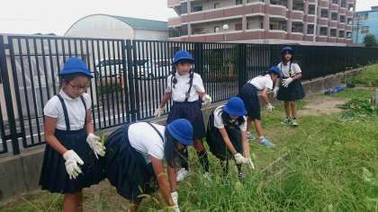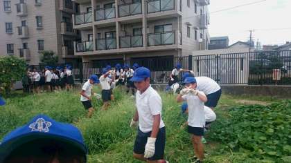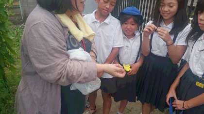 ヘチマ・ヒョウタン・カボチャなどの花や実を観察しています。