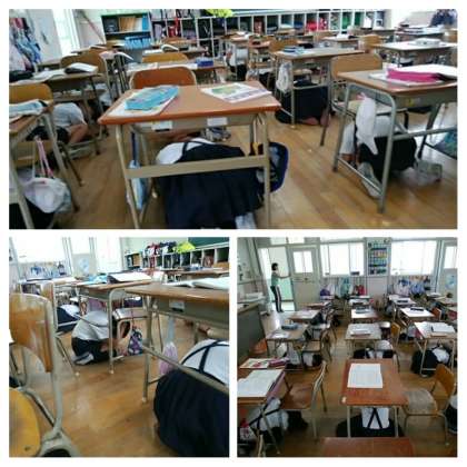 各学級では子どもの実態に応じた講話を聞いたり訓練に参加したりしていました。