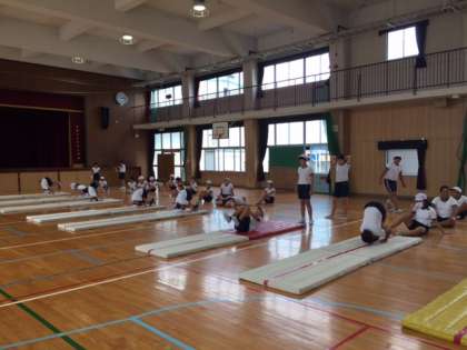 前転、後転、開脚前転、開脚後転にチャレンジしました。