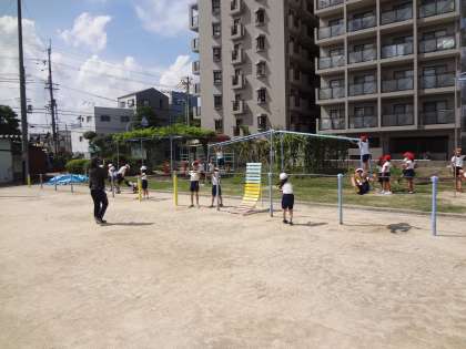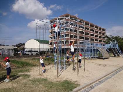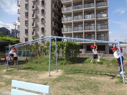 鉄棒・うんてい・のぼり棒をつかって体力づくりです。