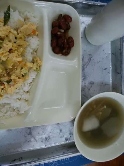 親子丼 とうがんのすまし汁 金時豆の煮もの 米飯 牛乳