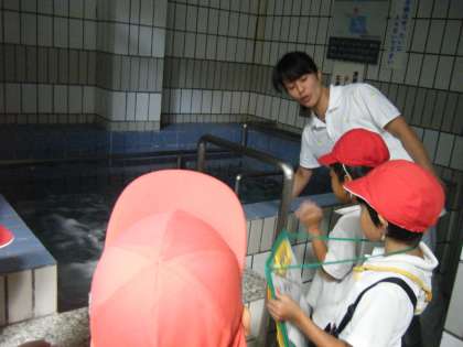 「お風呂で使っているお湯の量は?」「お客さんは一日でどれくらいですか?」などの質問に答えていただきました。