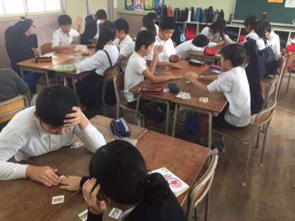 カルタと同じルールのアクティビティーなので、みんな耳を澄まして単語を聞きとっていました。何度も同じ単語にふれることで、その単語の意味や発音が自然と身についてきています。