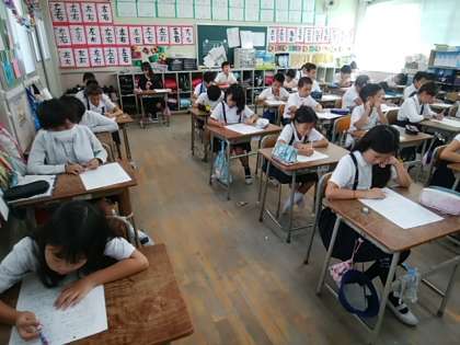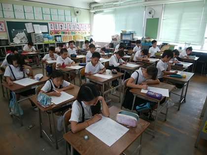 社会科の単元テストに取り組んでいます。