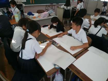 図画工作科ではお城をかいています。