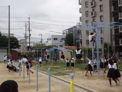 清掃のあと、15分間の休み時間を楽しんでいます。