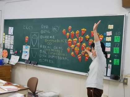 オリジナルのどんぐりが黒板に集結!