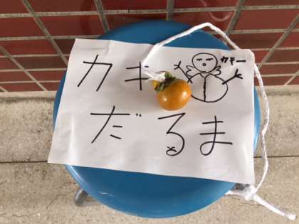 枝いっぱいに実った柿の中に、だるまのような形をした柿を発見しました。みんなが安全で過ごしやすい学校になるよう、いつも学校の木々や草木のメンテナンスもしてくださる管理作業員さんに感謝です。