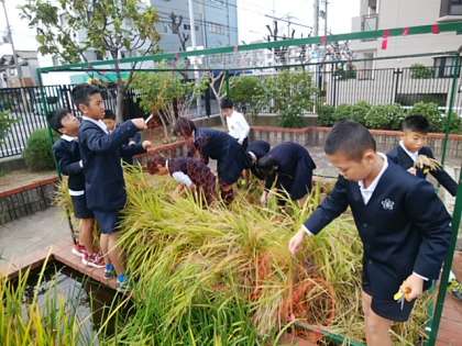 田植えをしてからこれまでの間、管理作業員さんのお手伝いもいただきながら成長を見守ってきました。