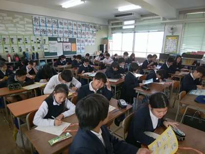 家庭科の裁縫をしたり、オリエンテーリングの計画立てたりしています。