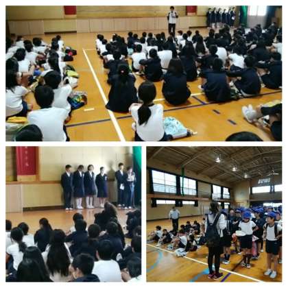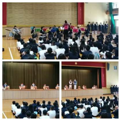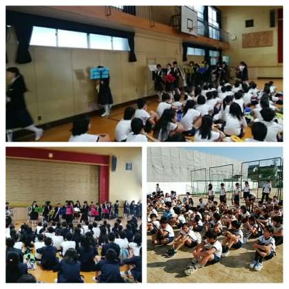 2小の6年生がブラスバンドの演奏や朝民研の演奏を聴かせていただきました。