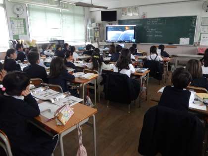 「鏡ではね返した日光」について、3年生が理科の学習をしています。