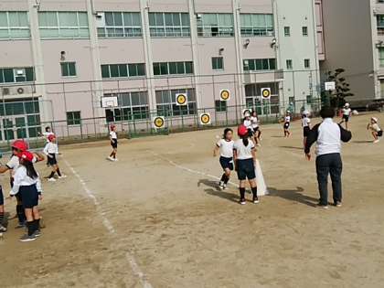 ボールを飛ばしたい場所を考えながらキックベースボールに取り組んでいます。