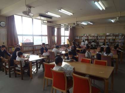 3年生は、図書室で興味のある本をじっくりと読んでいます。