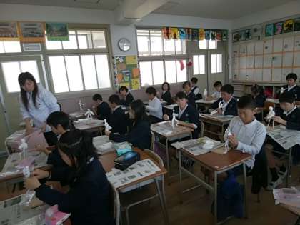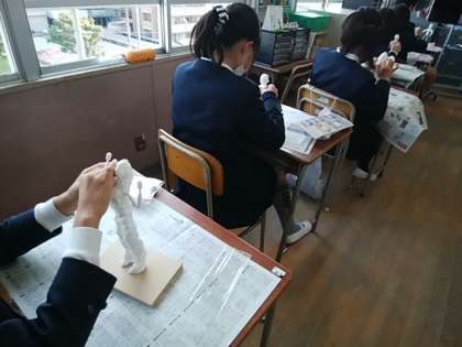 6年生は心材を使って動きのあるオブジェを制作中です。