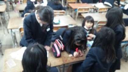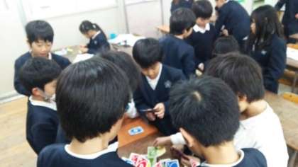 昼休みはあいにくの雨で運動場が使えなかったので、教室の中で工作をしたり係の仕事をしたり、カードゲームをしたりして過ごしています。