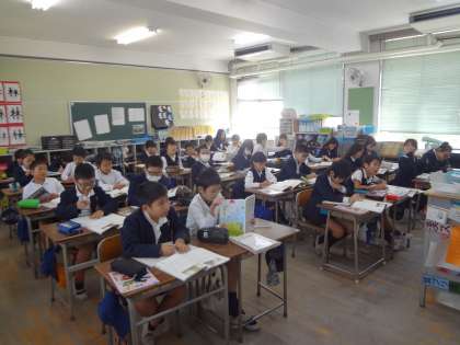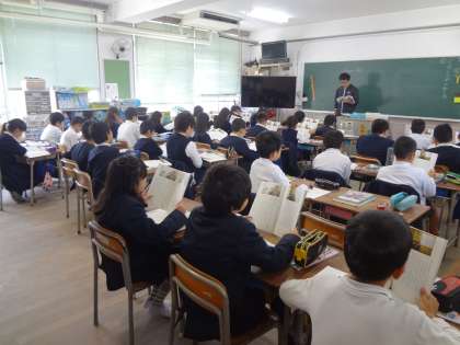 よい姿勢で音読した後、段落ごとに要点をまとめています。