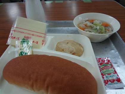 とうふハンバーグ スープ煮 パン スライスチーズ 牛乳