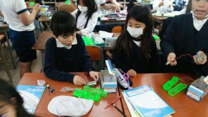 難しいころは隣同士教えあい、全員が明かりをつけることができました。