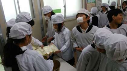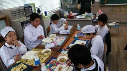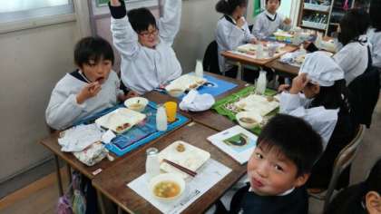 5年生との交流給食も今年度3回目となり、ペア学年としてずいぶんと打ち解けてきたようすです。