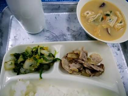 豚肉のしょうが焼き さつまいものみそ汁 きくなとはくさいのごまあえ 米飯 牛乳