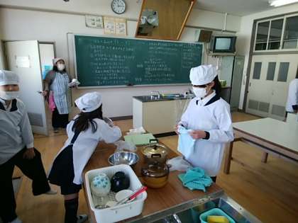 米を水に浸している間に、茶わんや調理器具を洗って清潔にしていました。