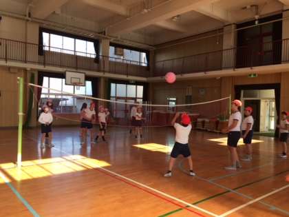 体育でソフトバレーボールをしています。