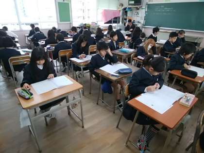 これまで授業で学んだ内容から出題されているので、100点満点の子もいるでしょう。みんな集中して取り組んでいました。