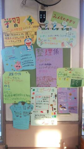 1学期2学期とくらべて、係の名前やポスターの形だけでなく、活動内容の工夫も見られます。