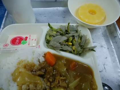 ポークカレーライス ごぼうサラダ パインアップル(缶) 米飯 牛乳