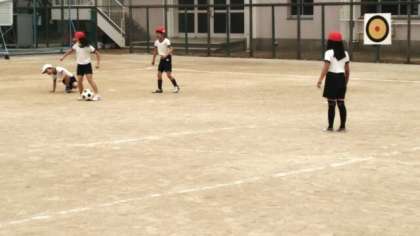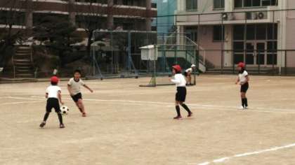 体育の学習では、「ラインサッカー」を行っています。