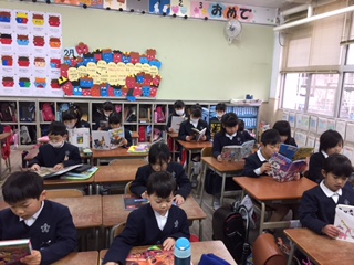 図書で借りてきた本や学級文庫の本を読んでいます。