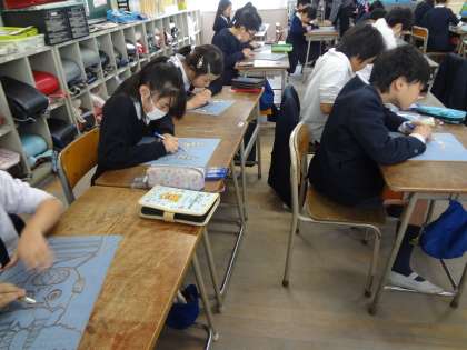 4年生が図画工作で版画に取り組んでいます。
