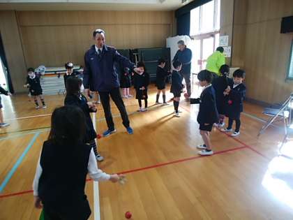 お手玉やメンコのコーナーではコツをつかむのが早い子もいて、ほめていただきました。