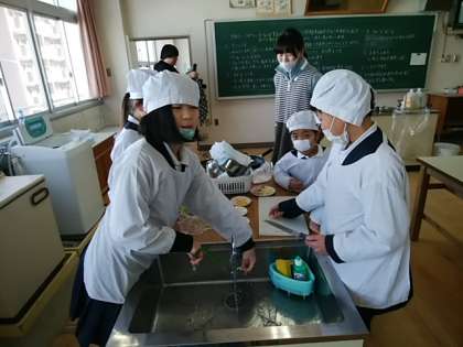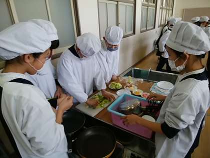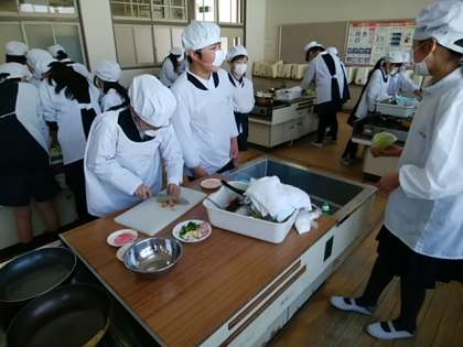 白玉フルーツポンチとお好み焼き作りの実習です。