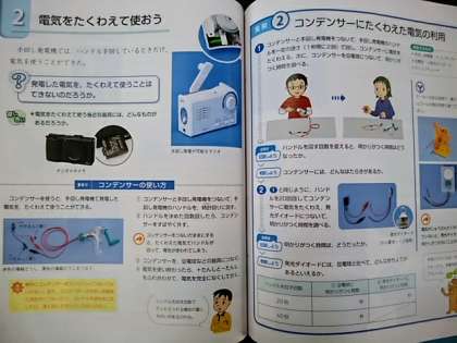 手回し発電機を使って実験を進めています。