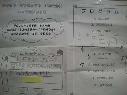 卒業生からは、一人一人のがんばりを讃えることばが送られていました。