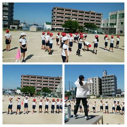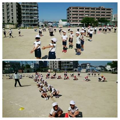 晴れの日の運動場では、団体演技の隊形になっていました。