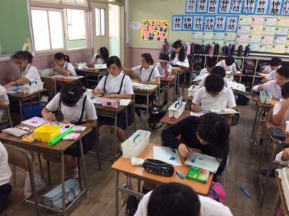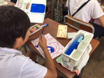 図画工作科の授業では、絵の具を使ってグラデーションについての学習を進めています。明るさの変化でつくるグラデーション、色相の変化でつくるグラデーションについて学び、二学期の作品展では、色彩豊かな作品をつくっていきたいと思います。