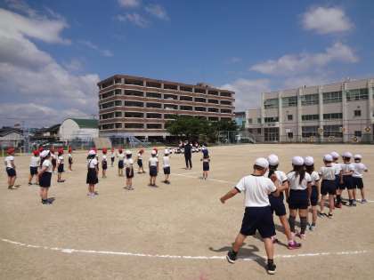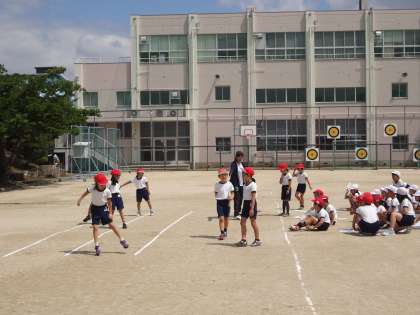 2年生がスポーツ記録会に向けて、50m走・立ち幅とび・反復横とびを練習しています。
